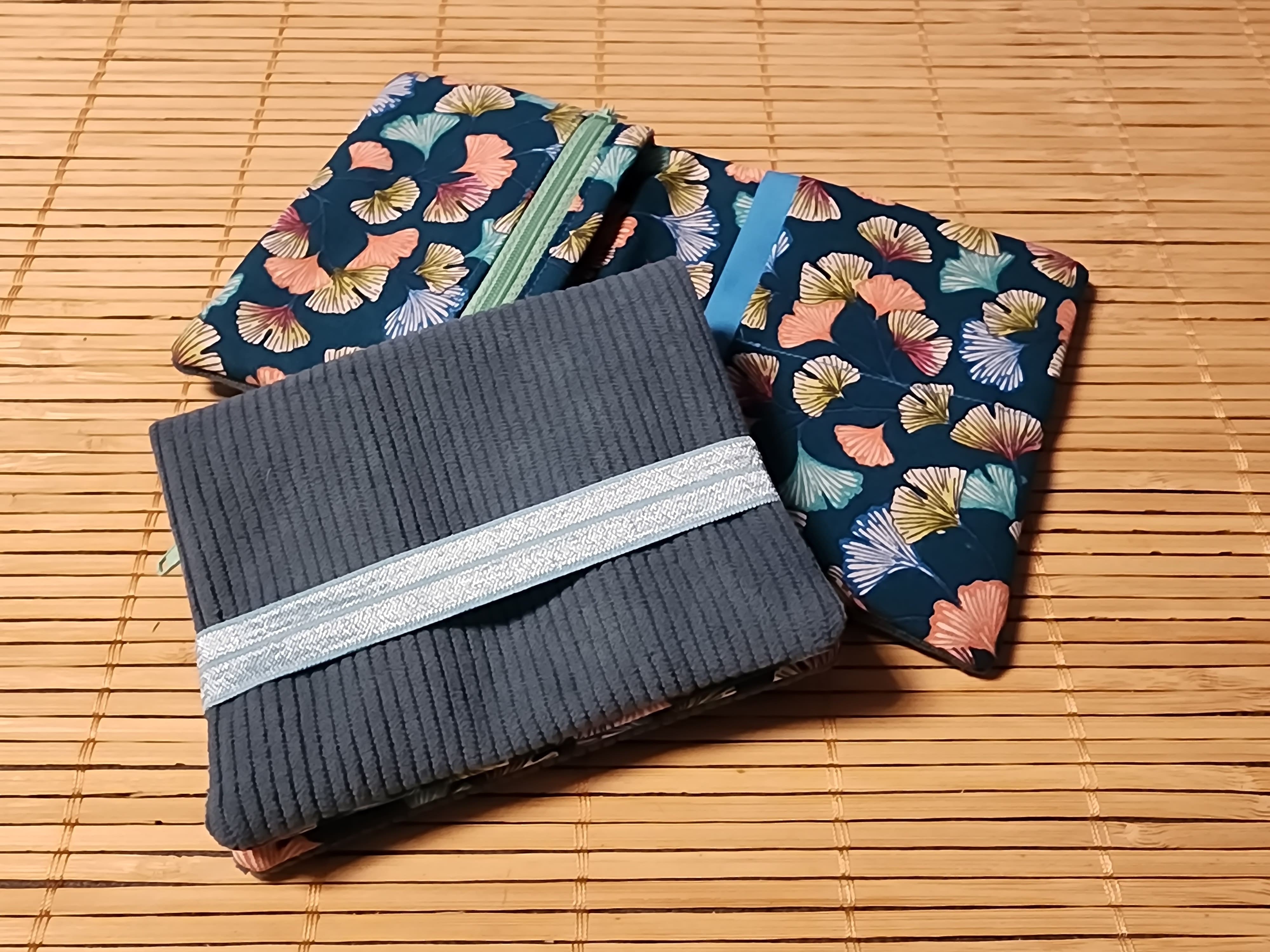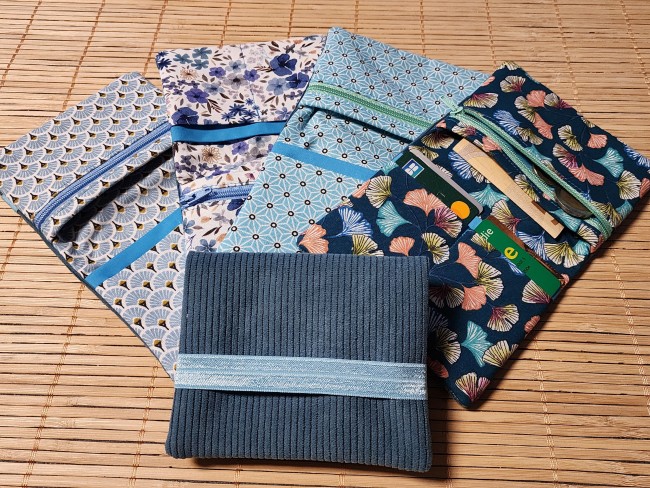 Portefeuille velours côtelé minimaliste ton bleu gingko fermeture éclaire porte monnaie porte carte tissus fermeture élastique