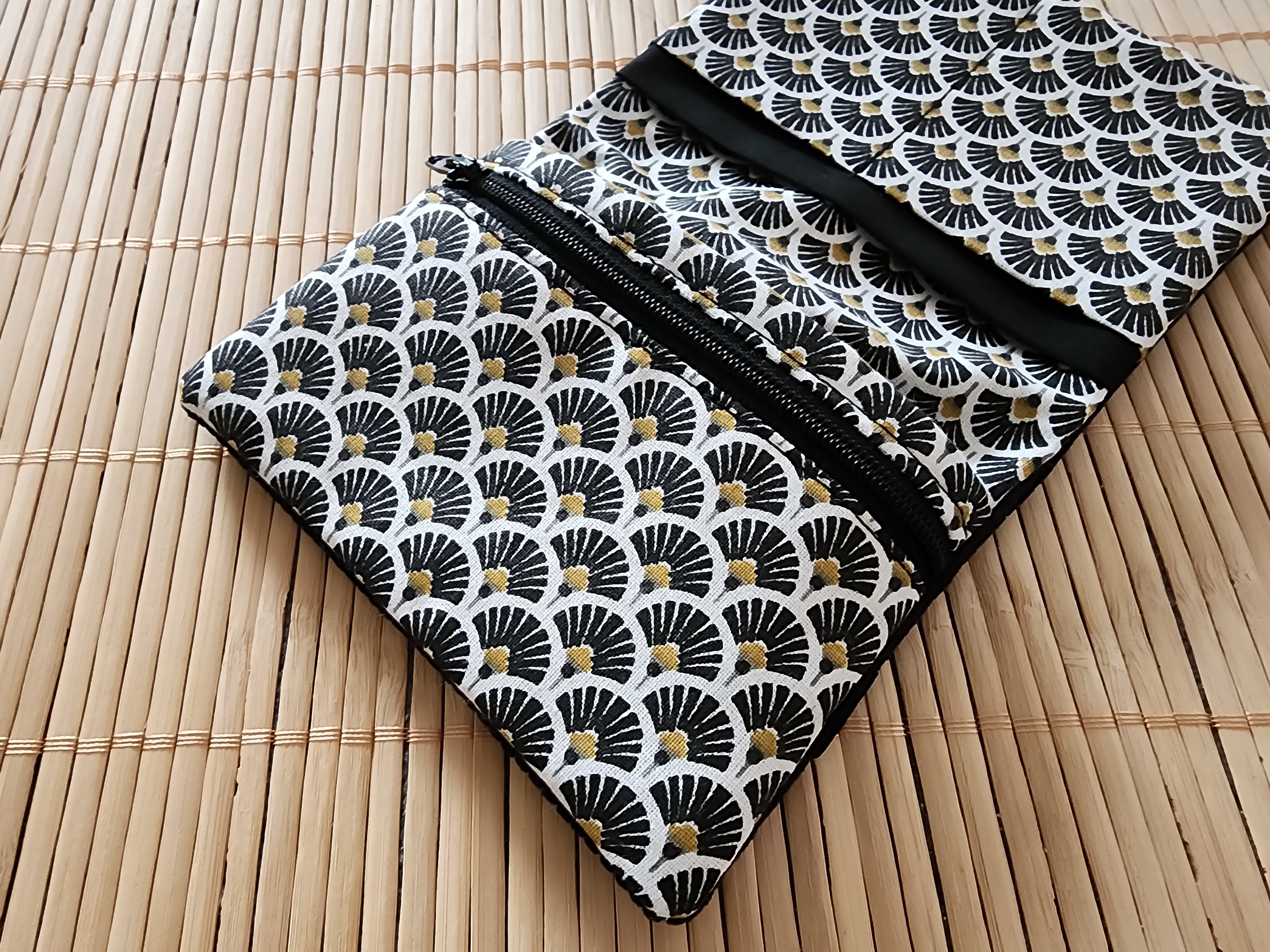 Portefeuille velours côtelé minimaliste ton noir éventails fermeture éclaire porte monnaie porte carte tissus fermeture élastique