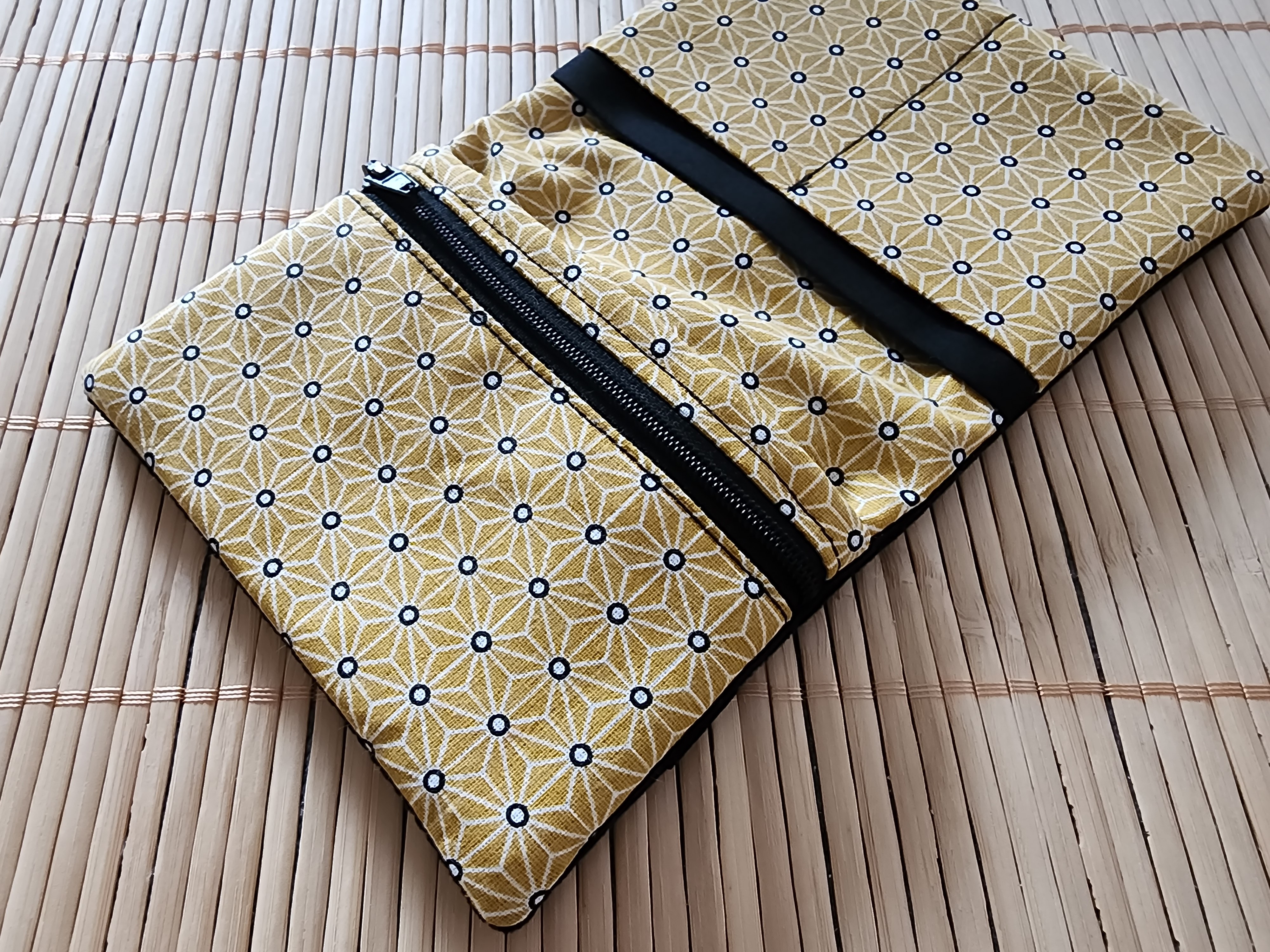 Portefeuille velours côtelé minimaliste ton noir étoiles jaune fermeture éclaire porte monnaie porte carte tissus fermeture élastique