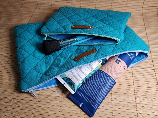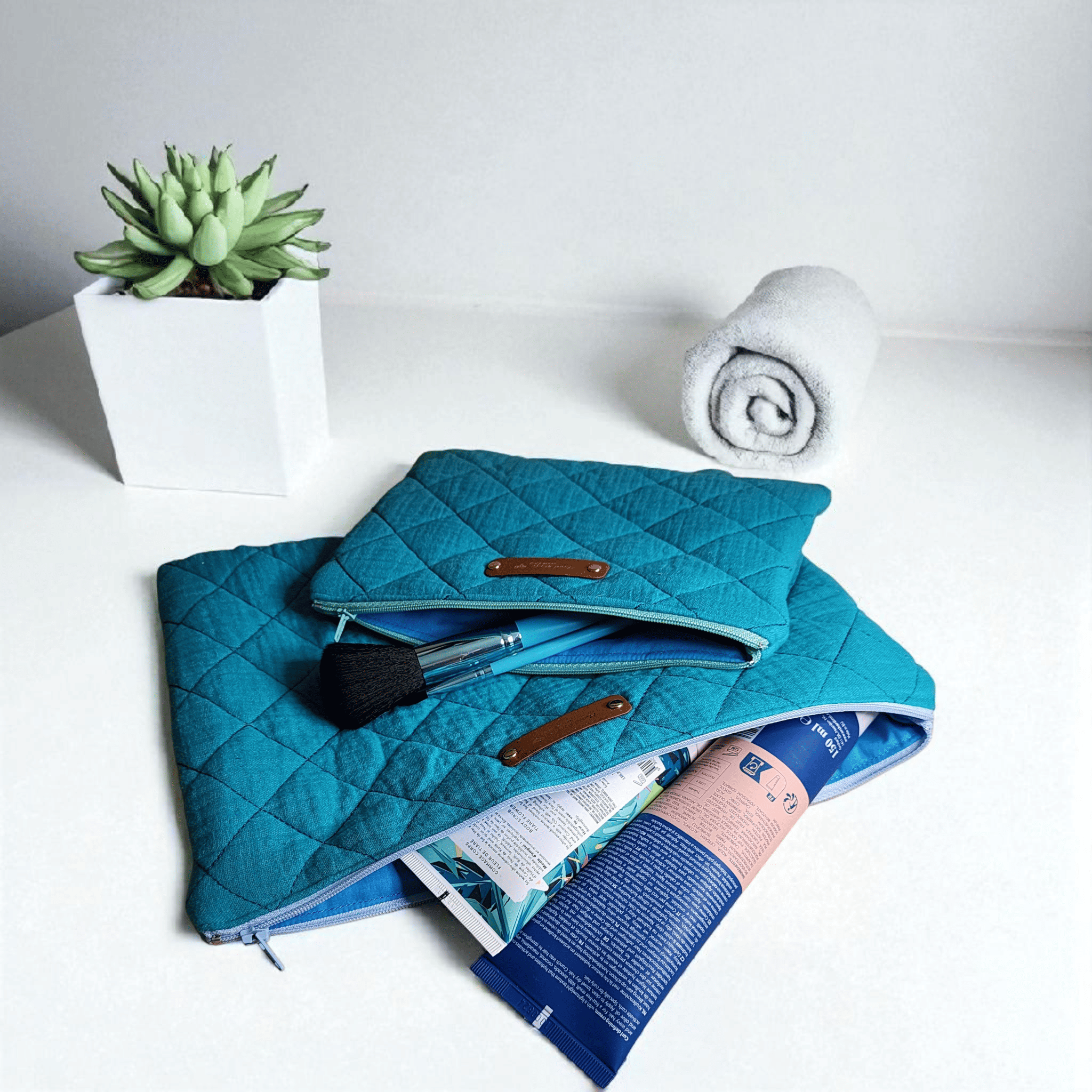 Trousse de toilette, maquillage ou d'école en tissus coton double gaze molletonné