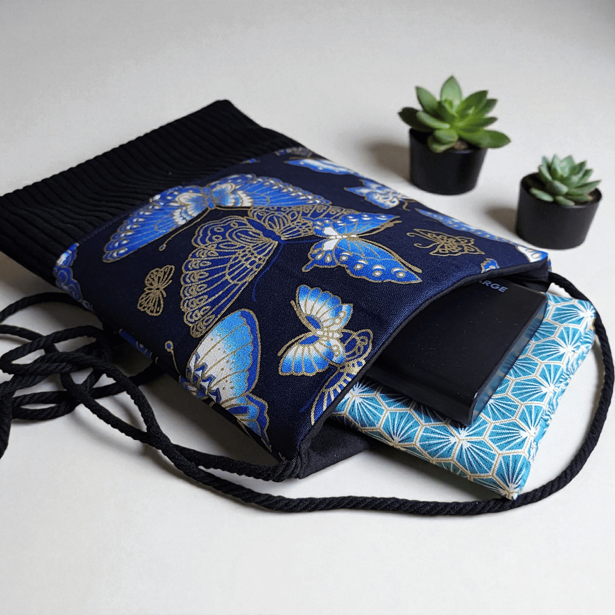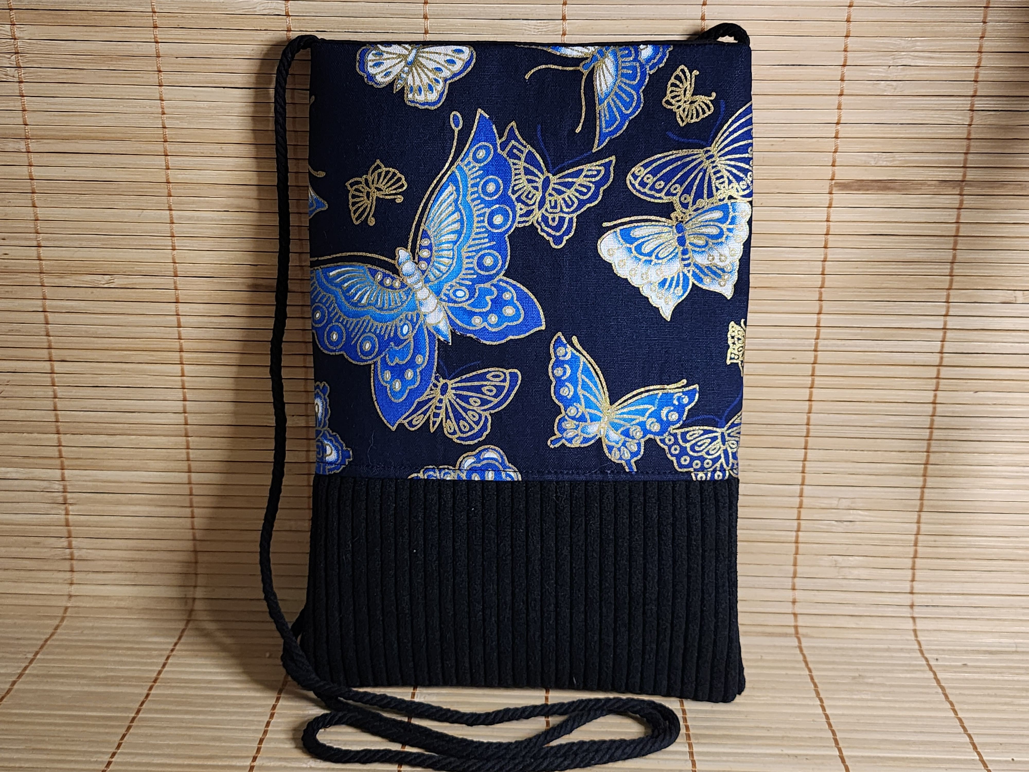 Pochette téléphone petit sac bandoulière tissu japonais papillons et velours côtelé pochette porte monnaie fermeture aimanté