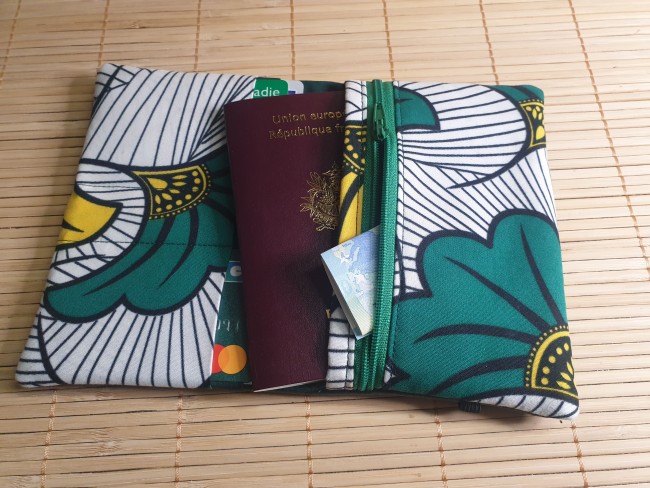 Grand portefeuille étui passeport fleurs vert multipoches fermeture éclaire porte monnaie porte carte en tissus fermeture élastique
