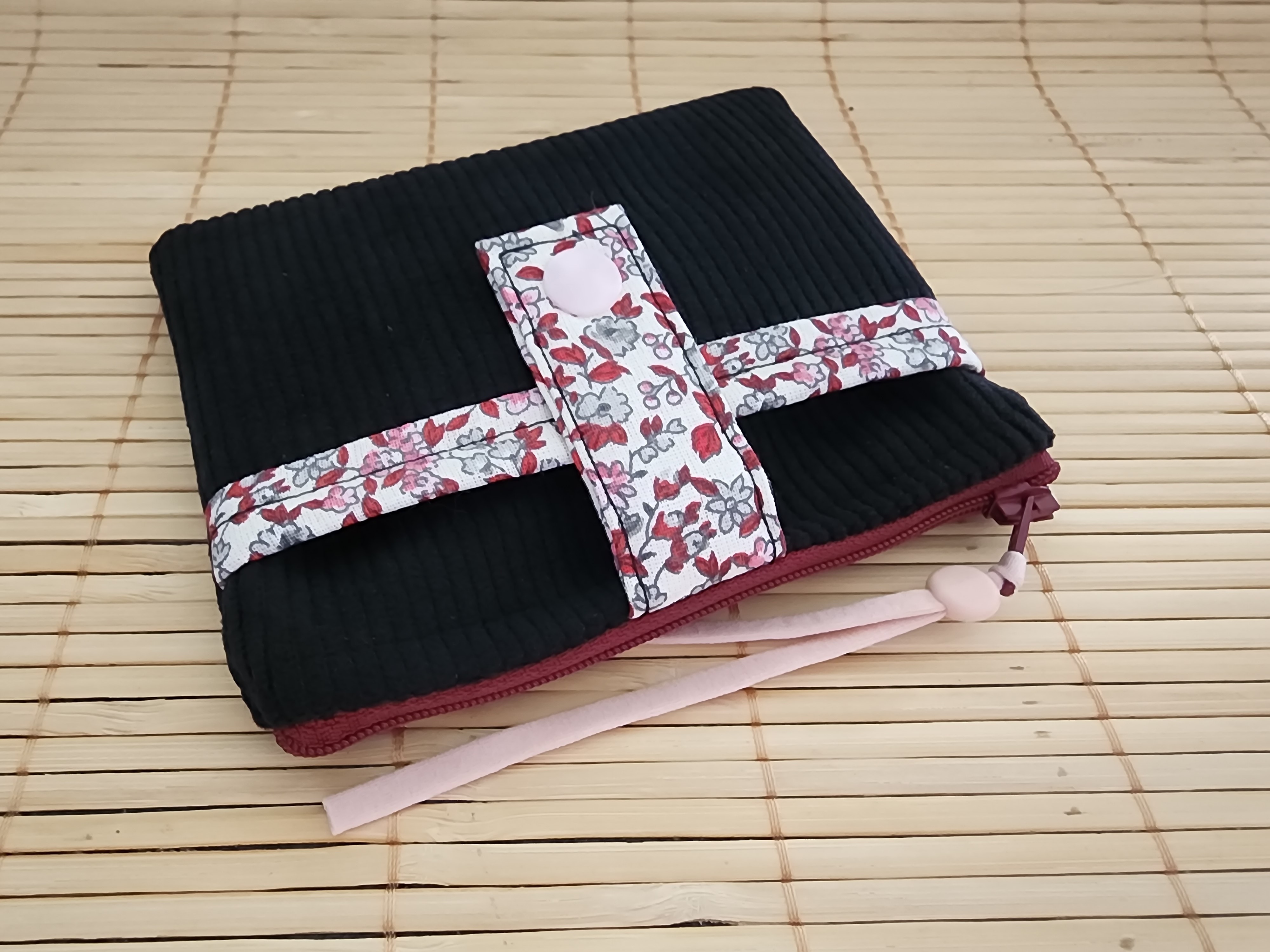 Portefeuille tissus fleuri et velours côtelé pratique, porte monnaie en velours côtelé.