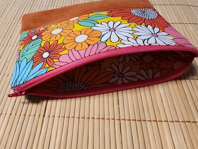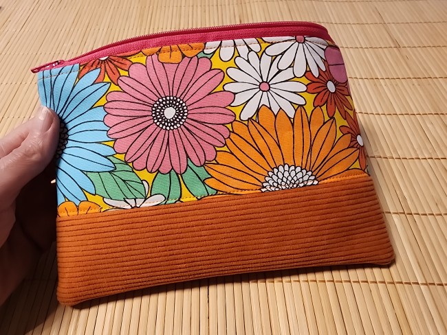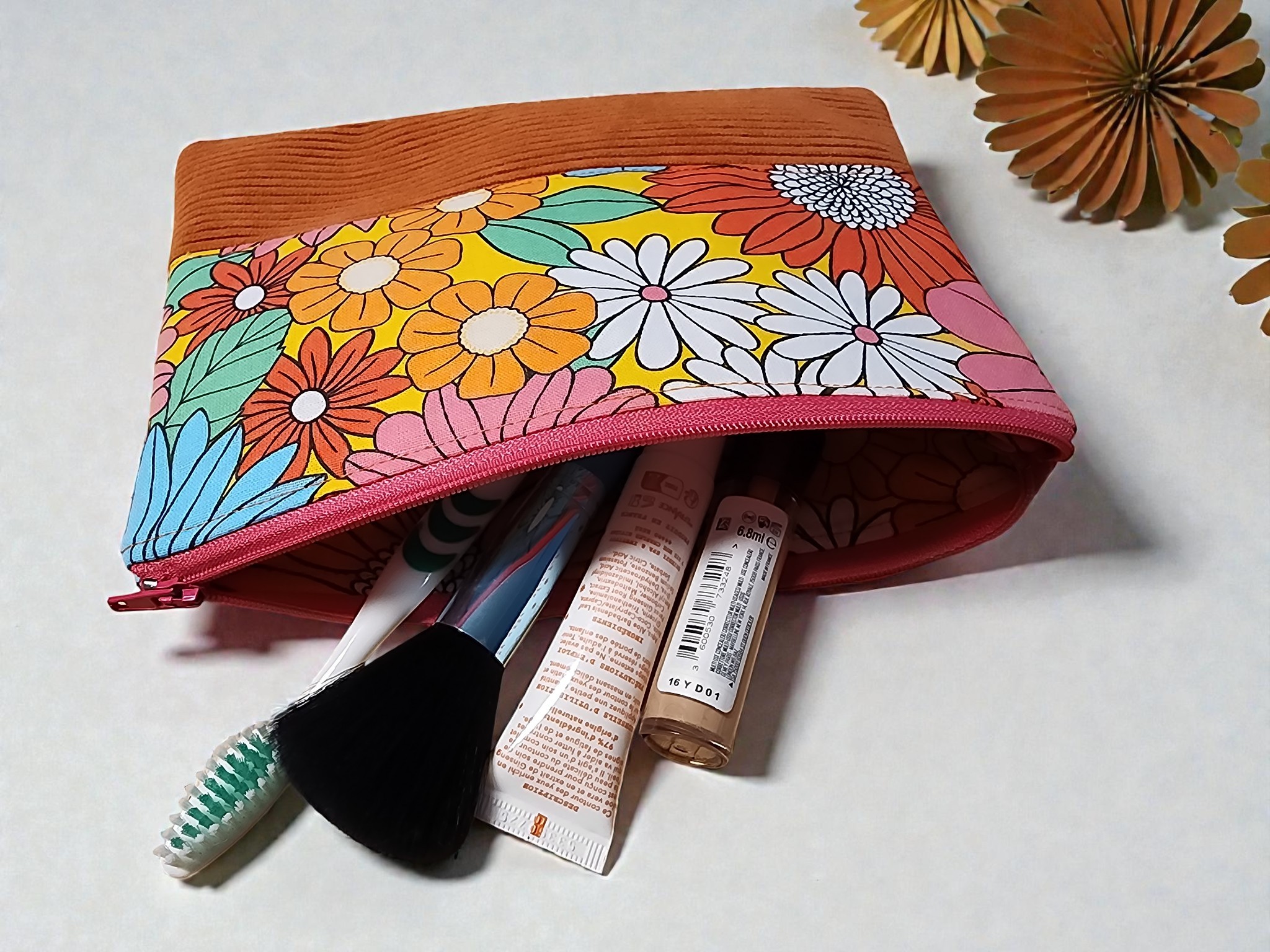 Trousse de toilette en velours côtelé et tissus fleuris multicolore trousse d'école trousse maquillage plate Idée cadeau!