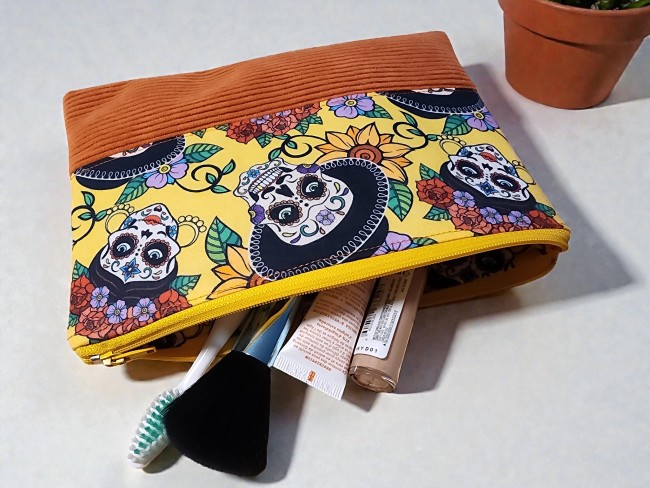 Trousse de toilette, maquillage ou d'école en tissus et suedine