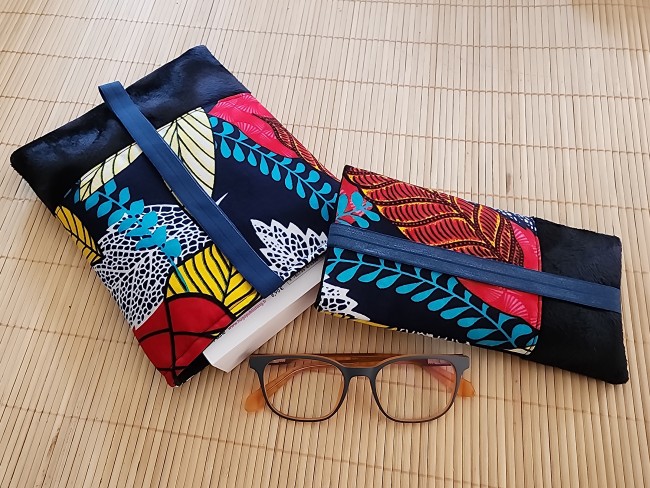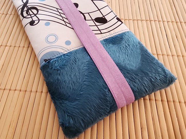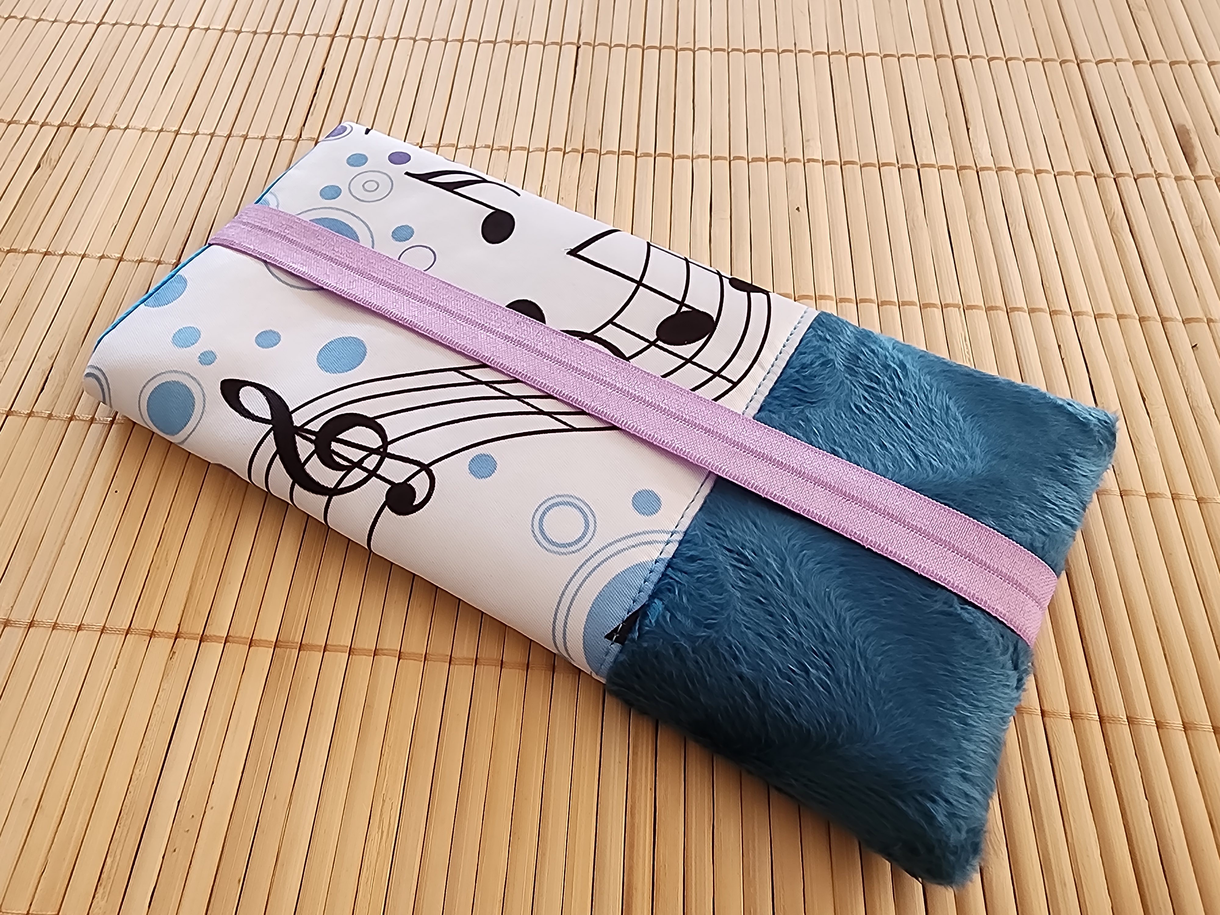 Etui à lunettes en tissus note de musique et velours bleu fermeture élastique protection lunettes