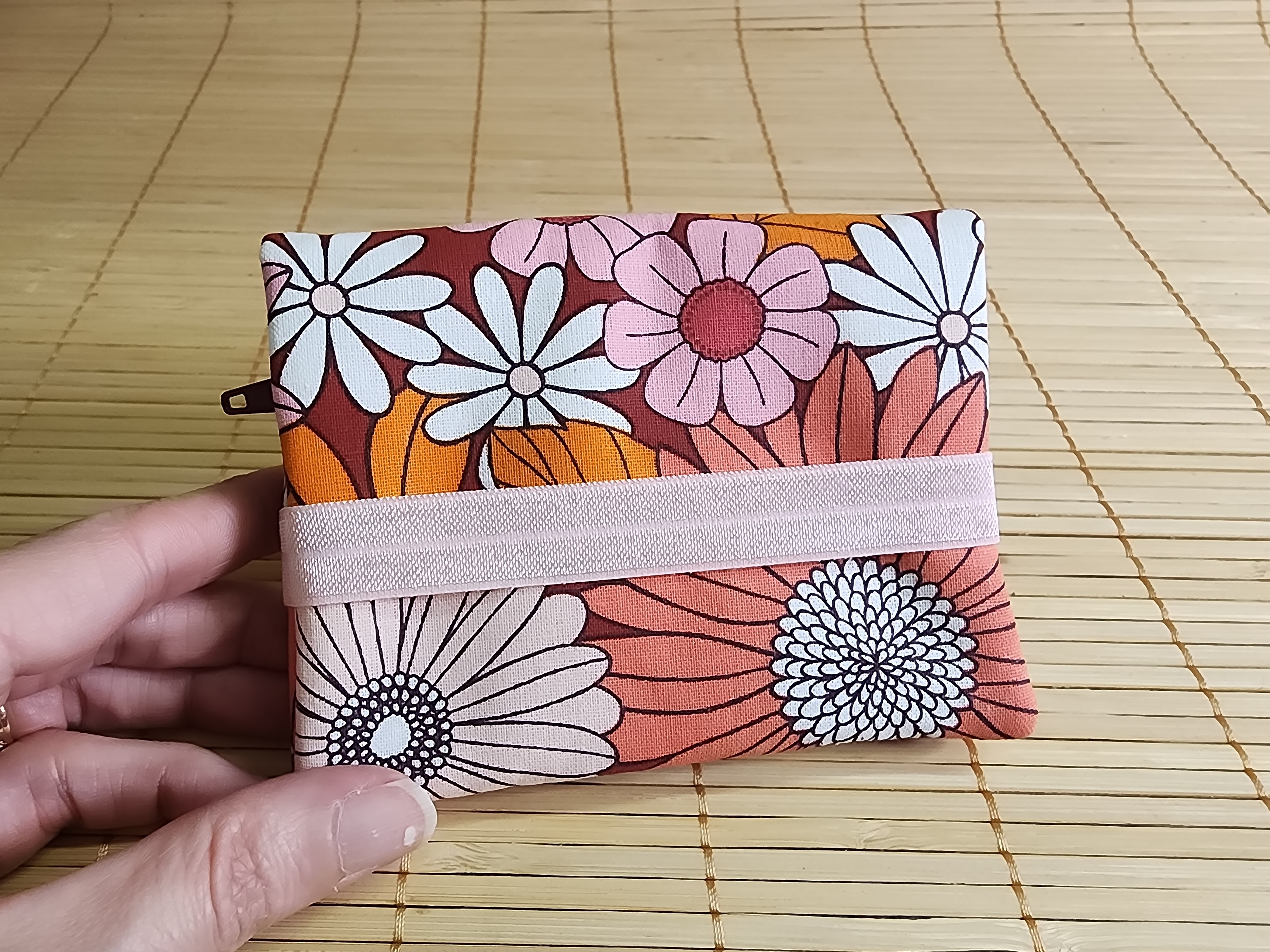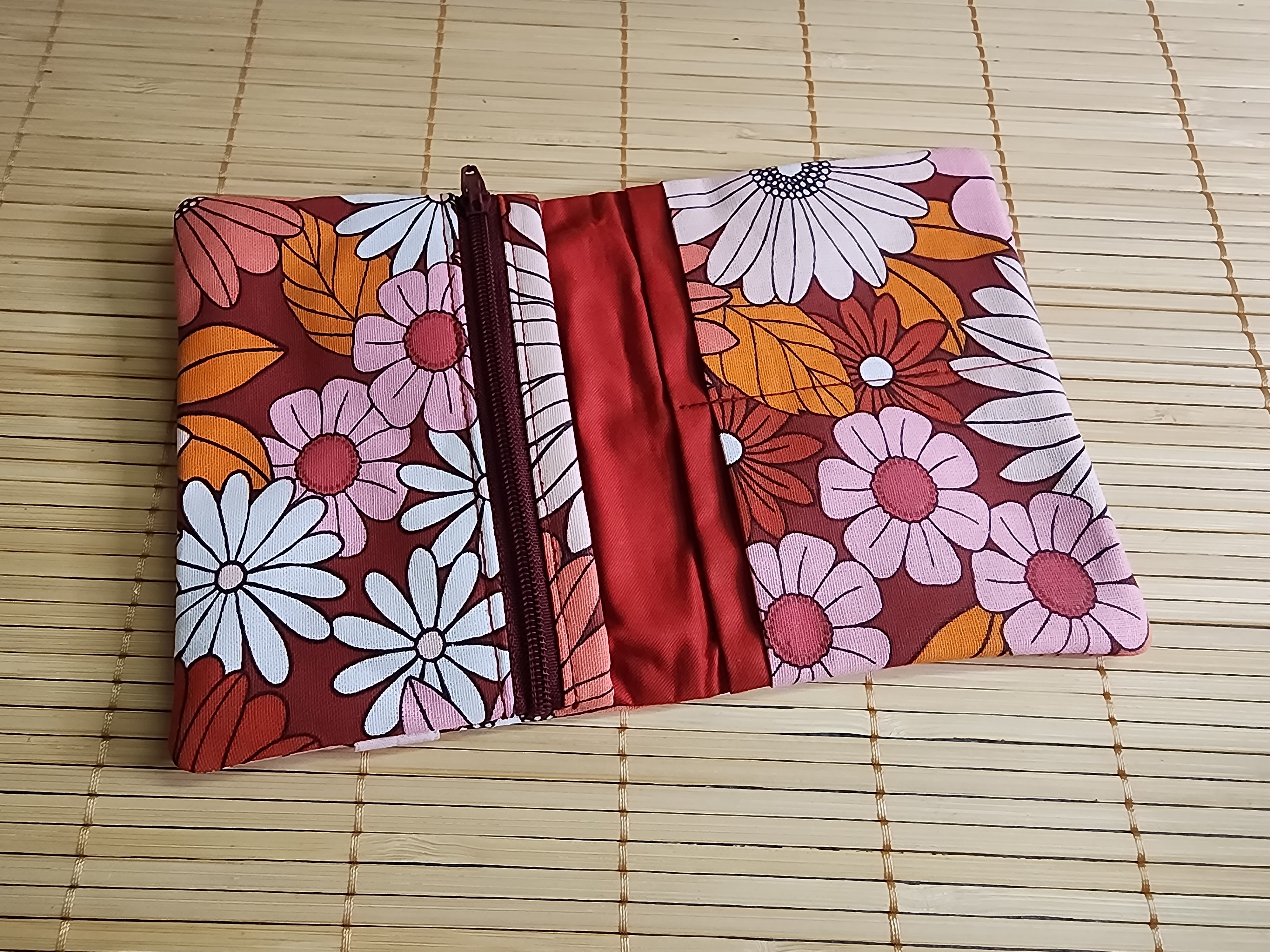Portefeuille fleurs bordeaux multipoches fermeture éclaire porte monnaie porte carte en tissus fermeture élastique portefeuille Diane