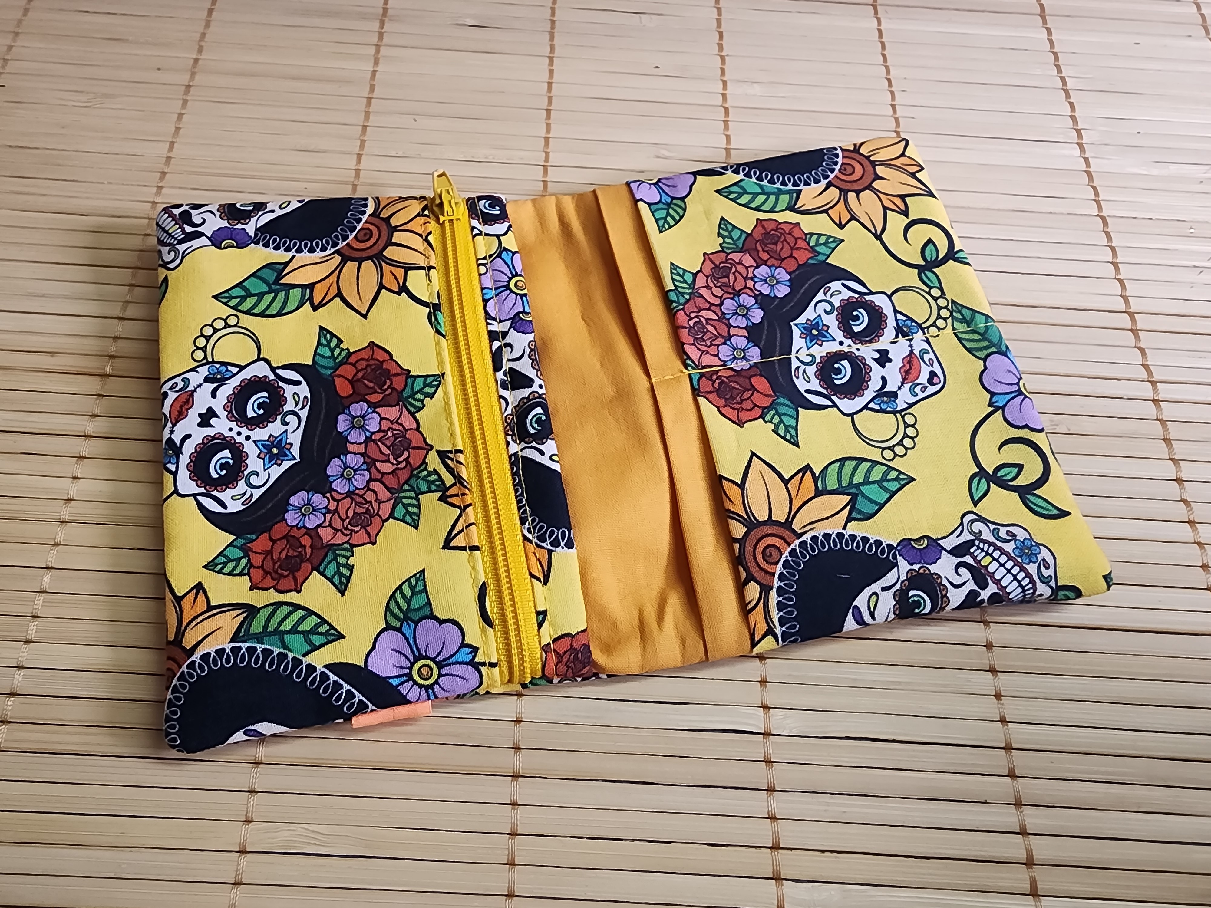 Portefeuille gothique jaune multipoches fermeture éclaire porte monnaie porte carte en tissus fermeture élastique portefeuille Diane