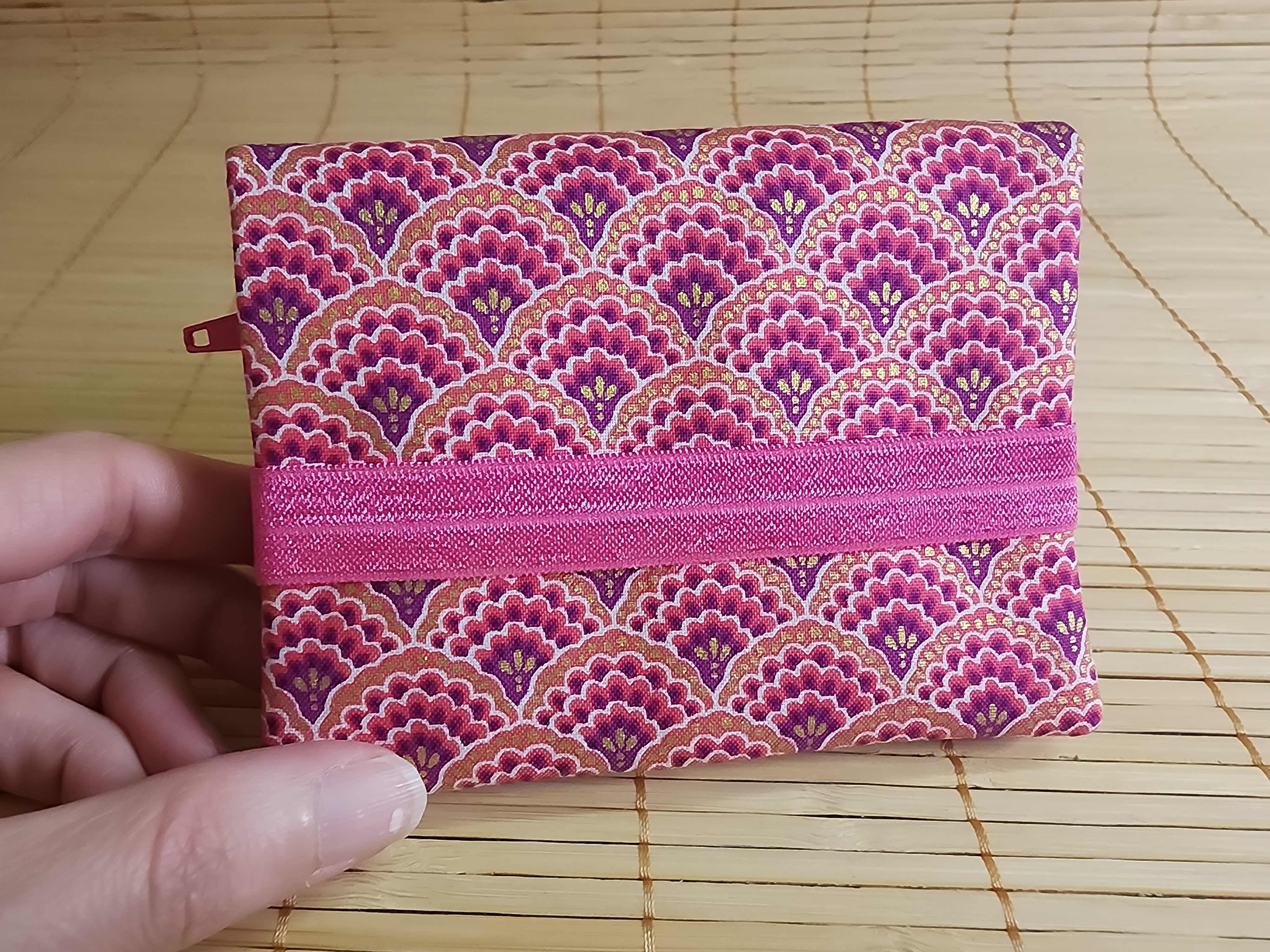 Portefeuille éventails rose multipoches fermeture éclaire porte monnaie porte carte en tissus fermeture élastique portefeuille Diane