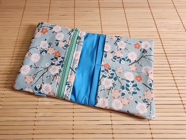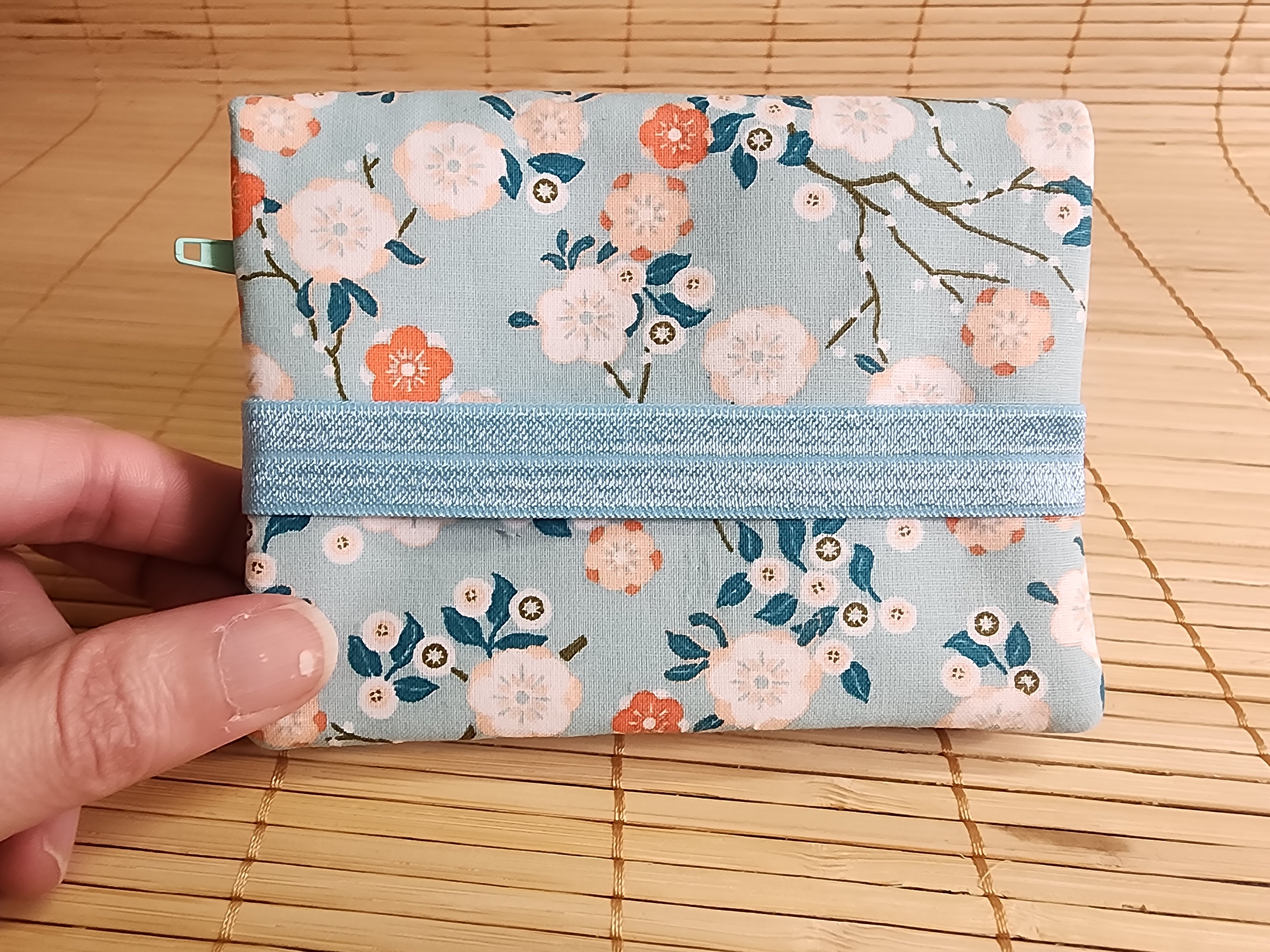 Portefeuille sakura bleu multipoches fermeture éclaire porte monnaie porte carte en tissus fermeture élastique portefeuille Diane