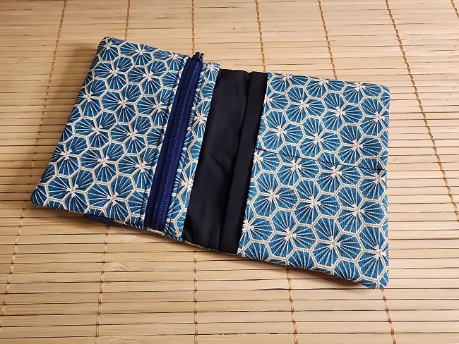 Portefeuille riad bleu multipoches fermeture éclaire porte monnaie porte carte en tissus fermeture élastique portefeuille Diane