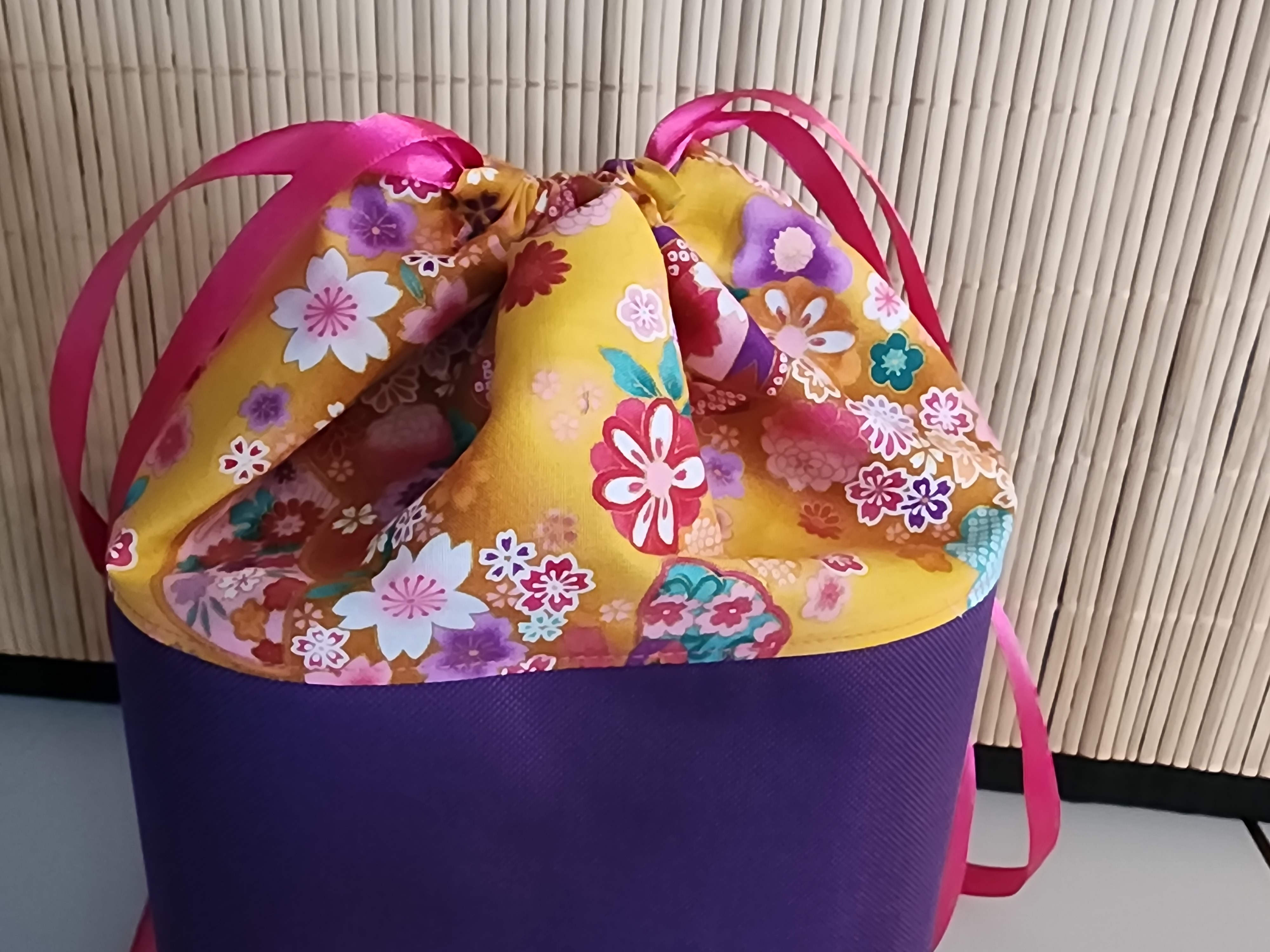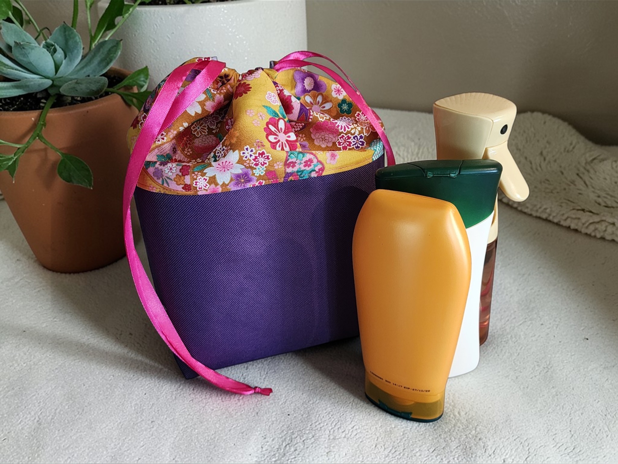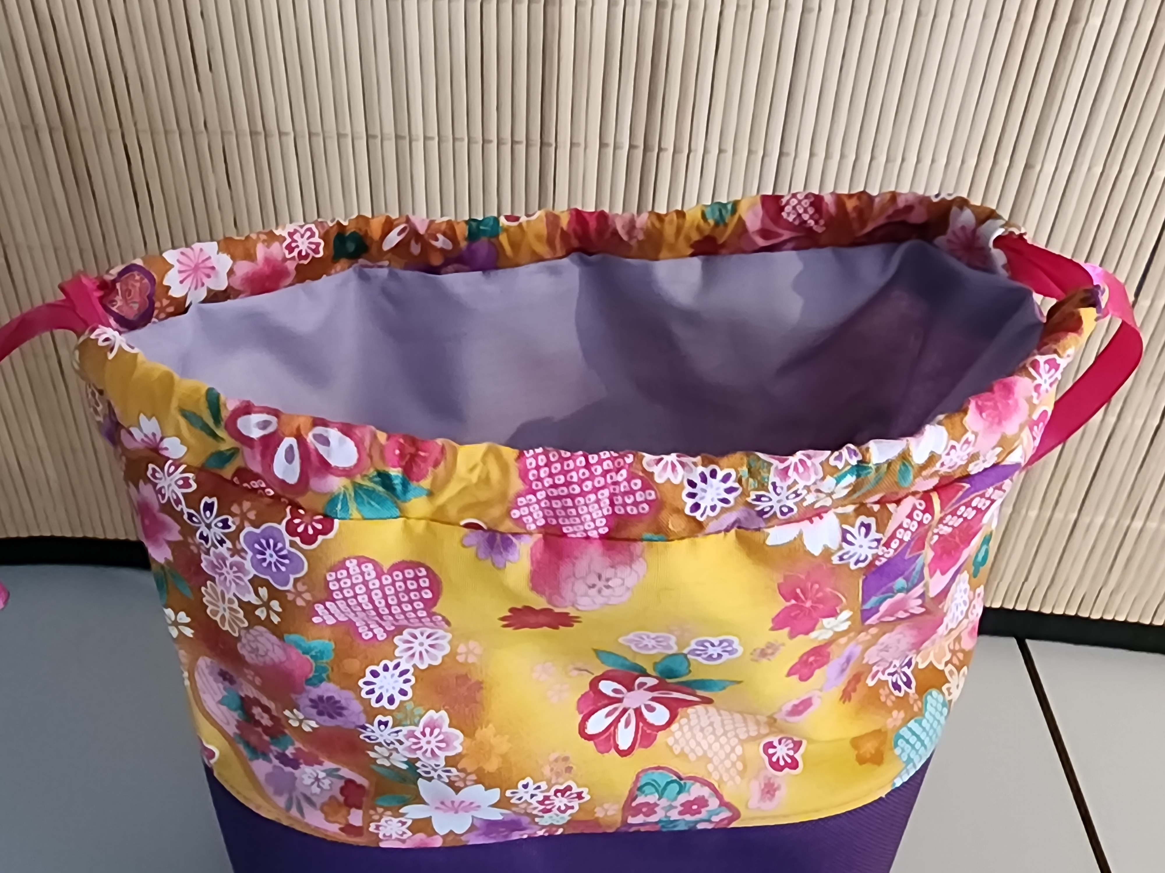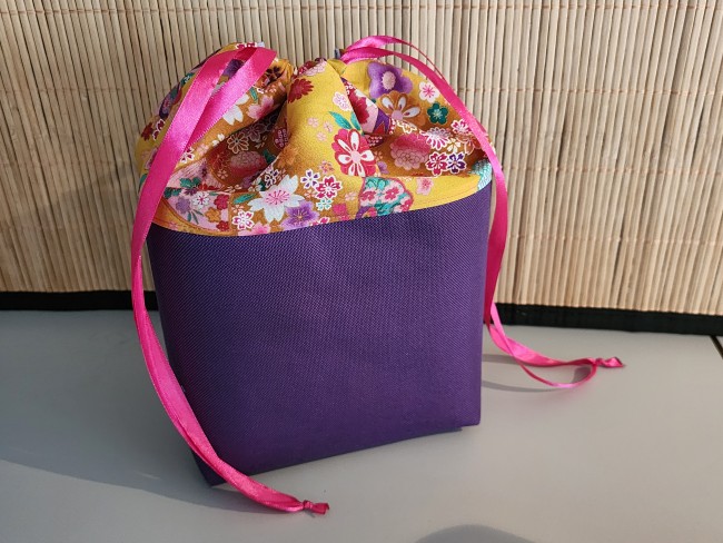 Trousse de toilette polochon Fleurs jaune et violet Pochette de voyage en tissu Rangement cosmétique Cadeau pratique et élégant