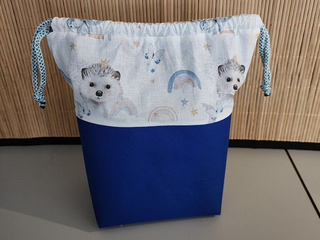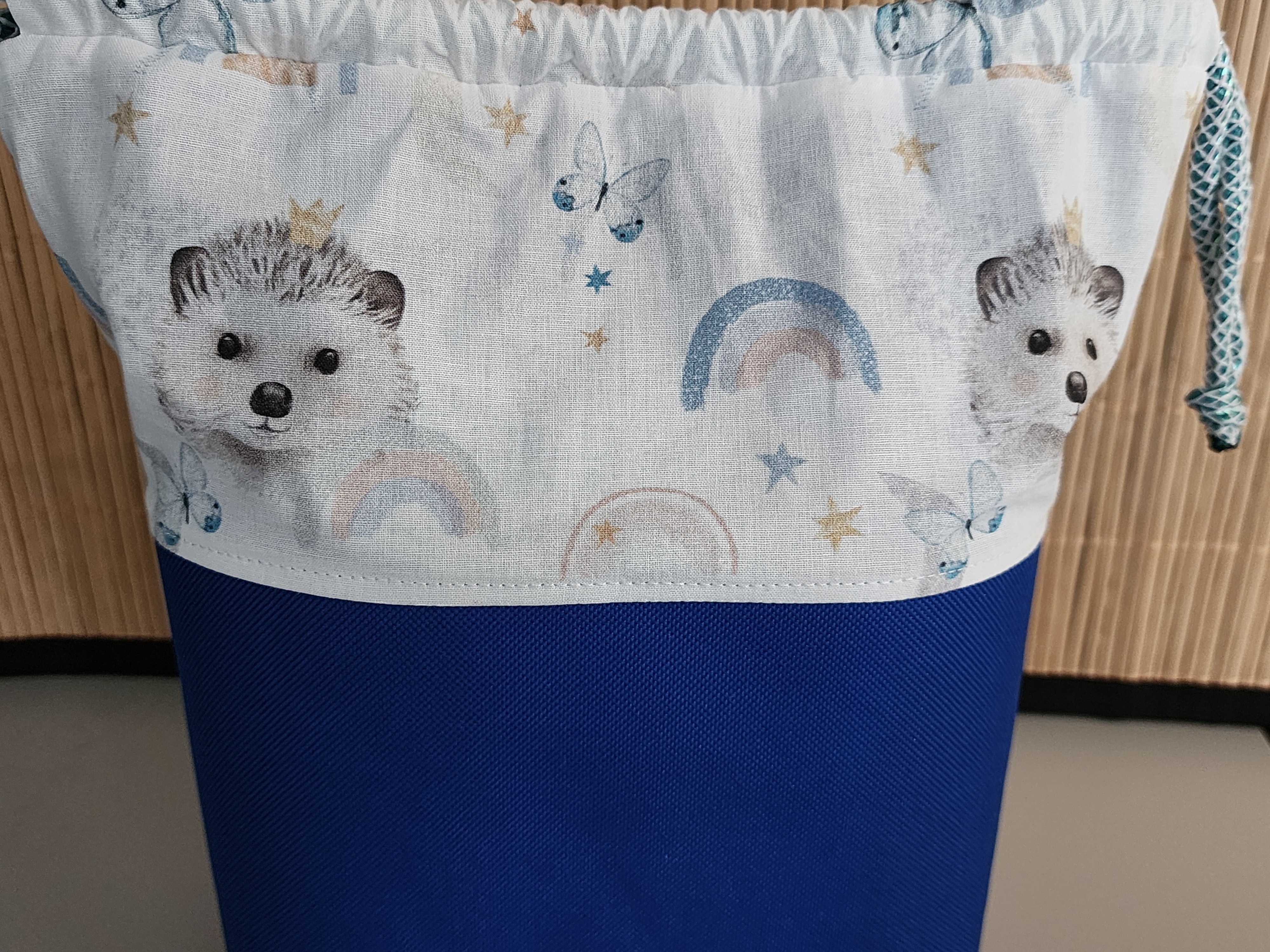 Trousse de toilette polochon Hérissons blanc et bleu Pochette de voyage en tissu Rangement cosmétique Cadeau pratique et élégant
