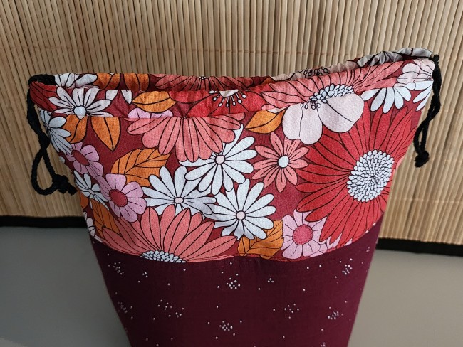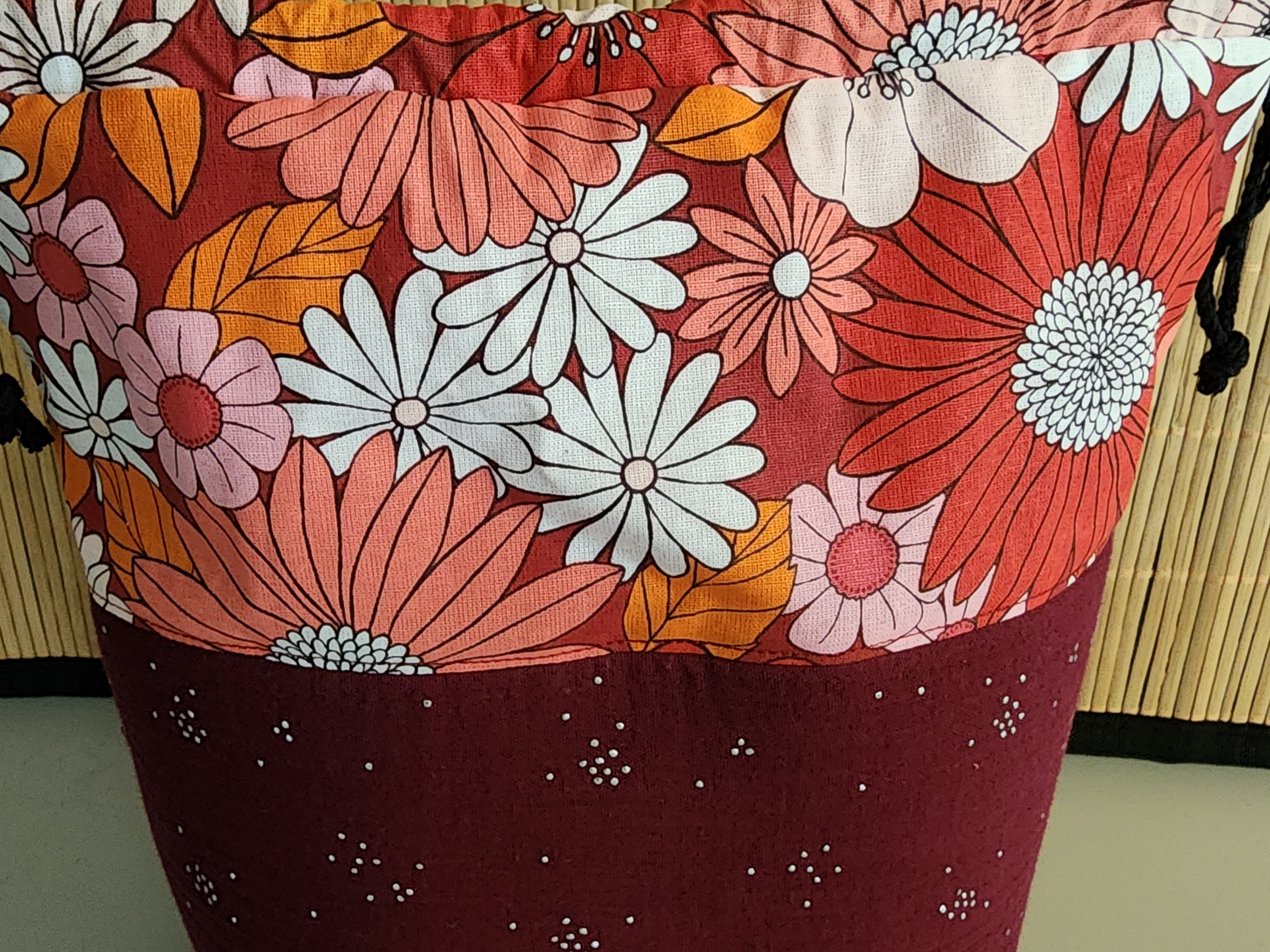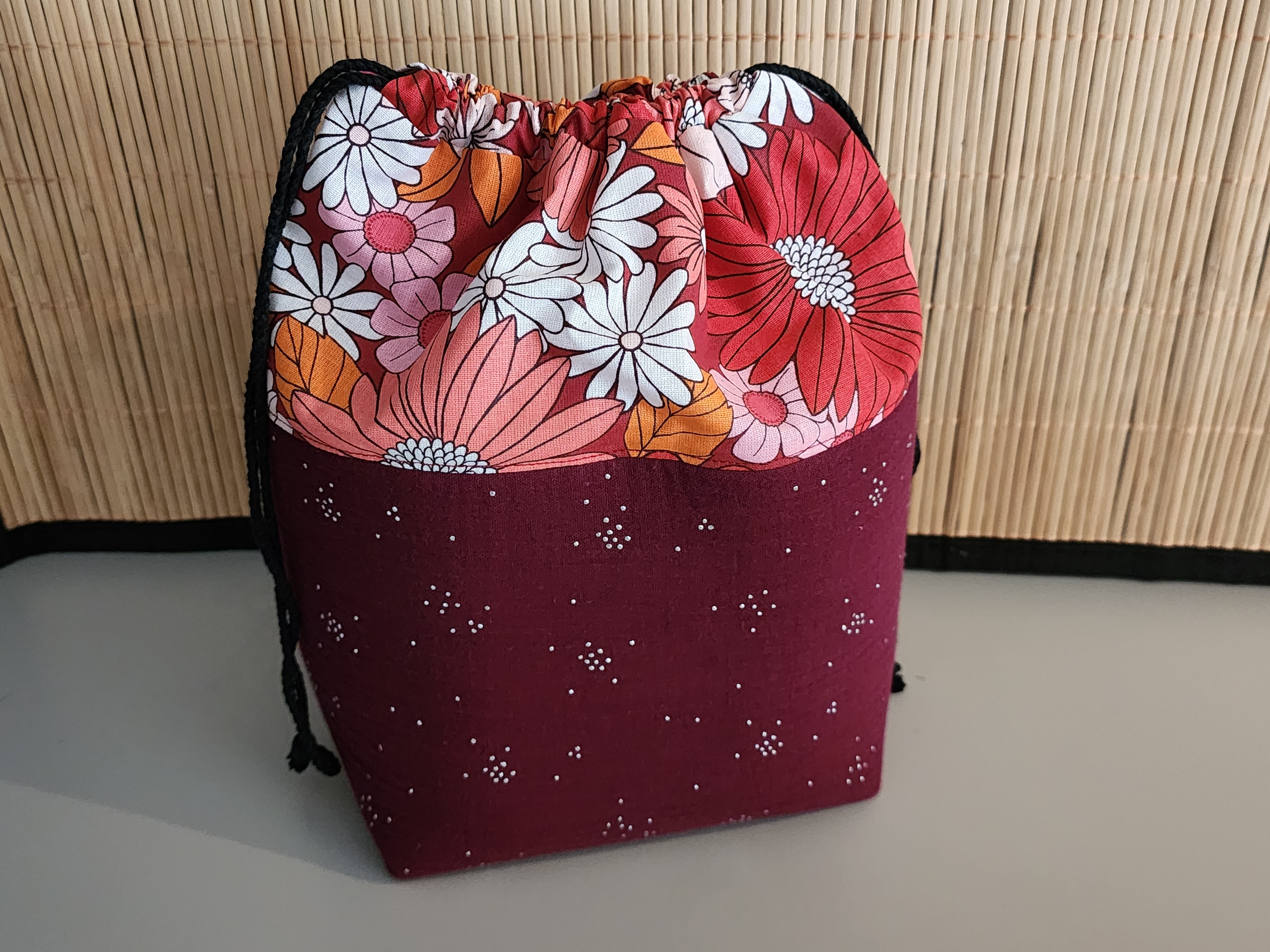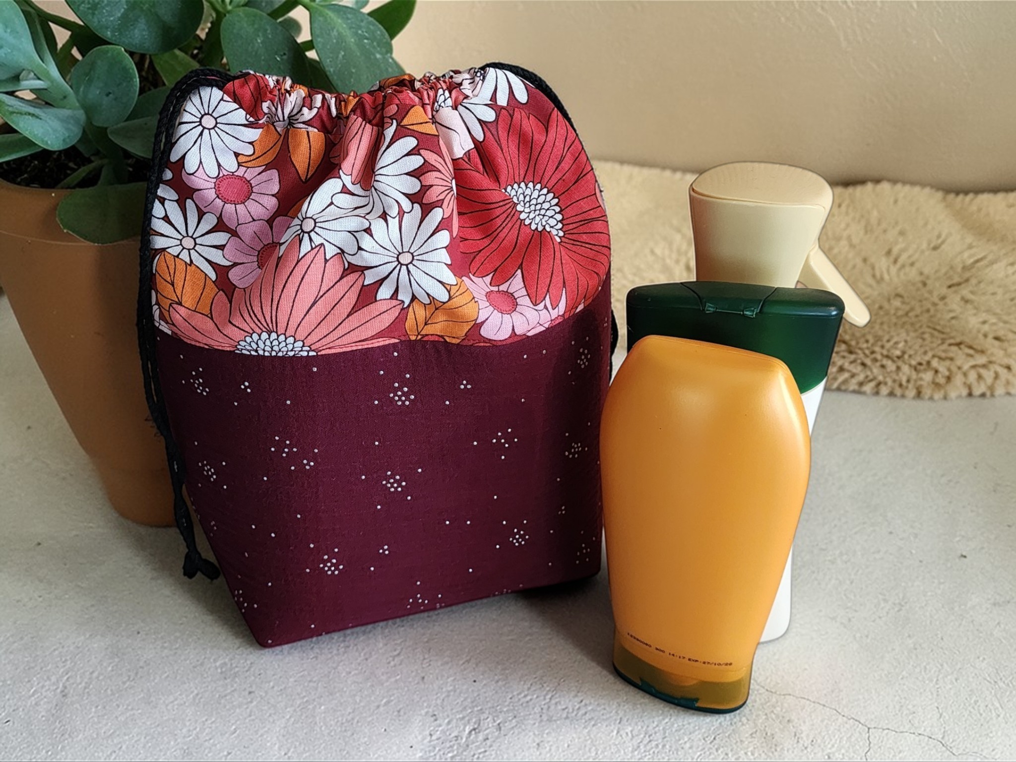 Trousse de toilette polochon Fleurs bordeaux et double gaz Pochette de voyage en tissu Rangement cosmétique Cadeau pratique et élégant