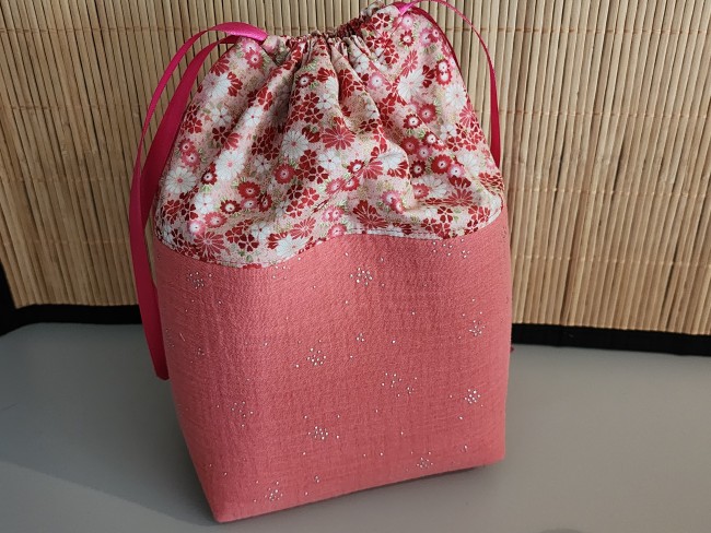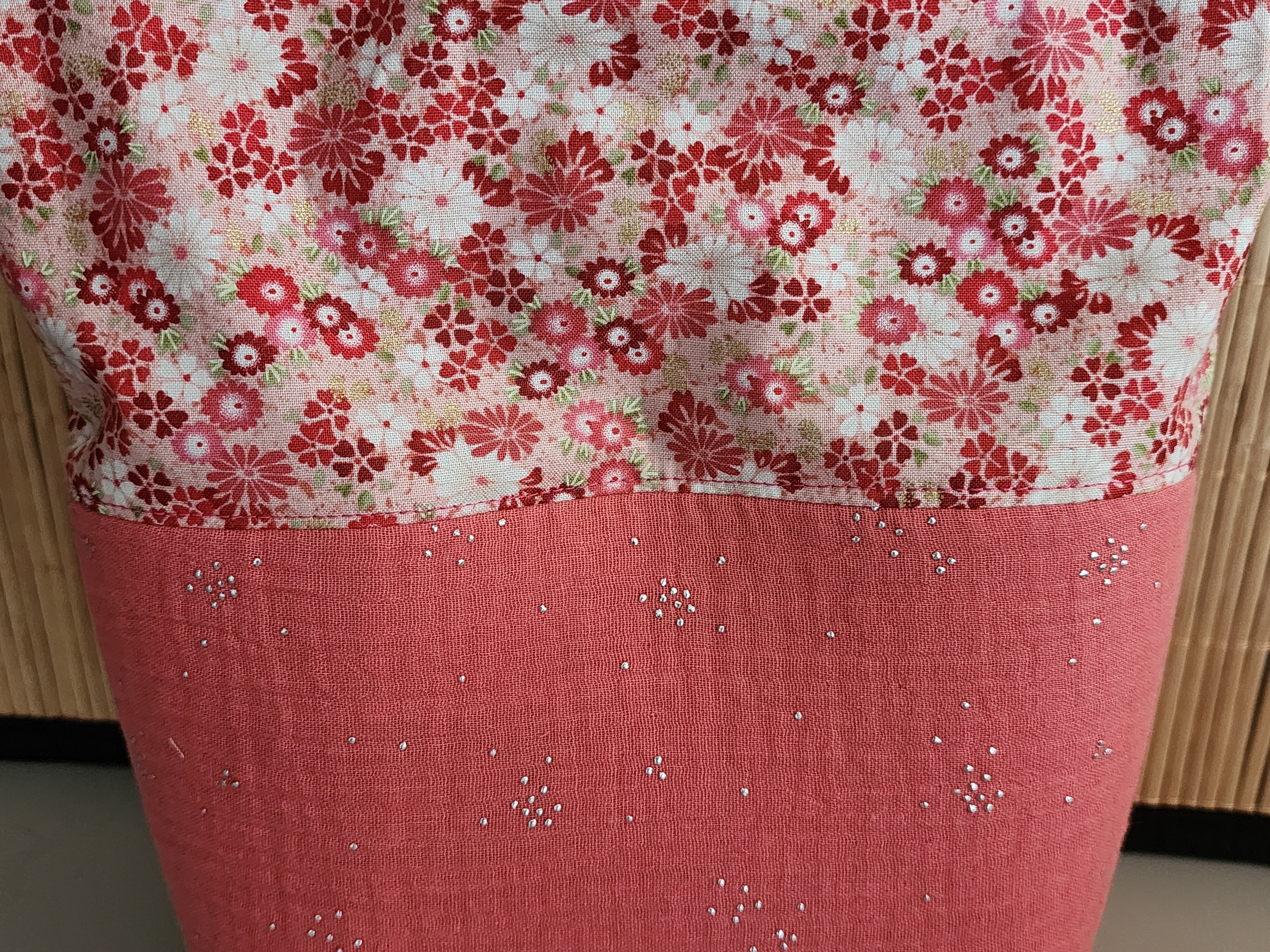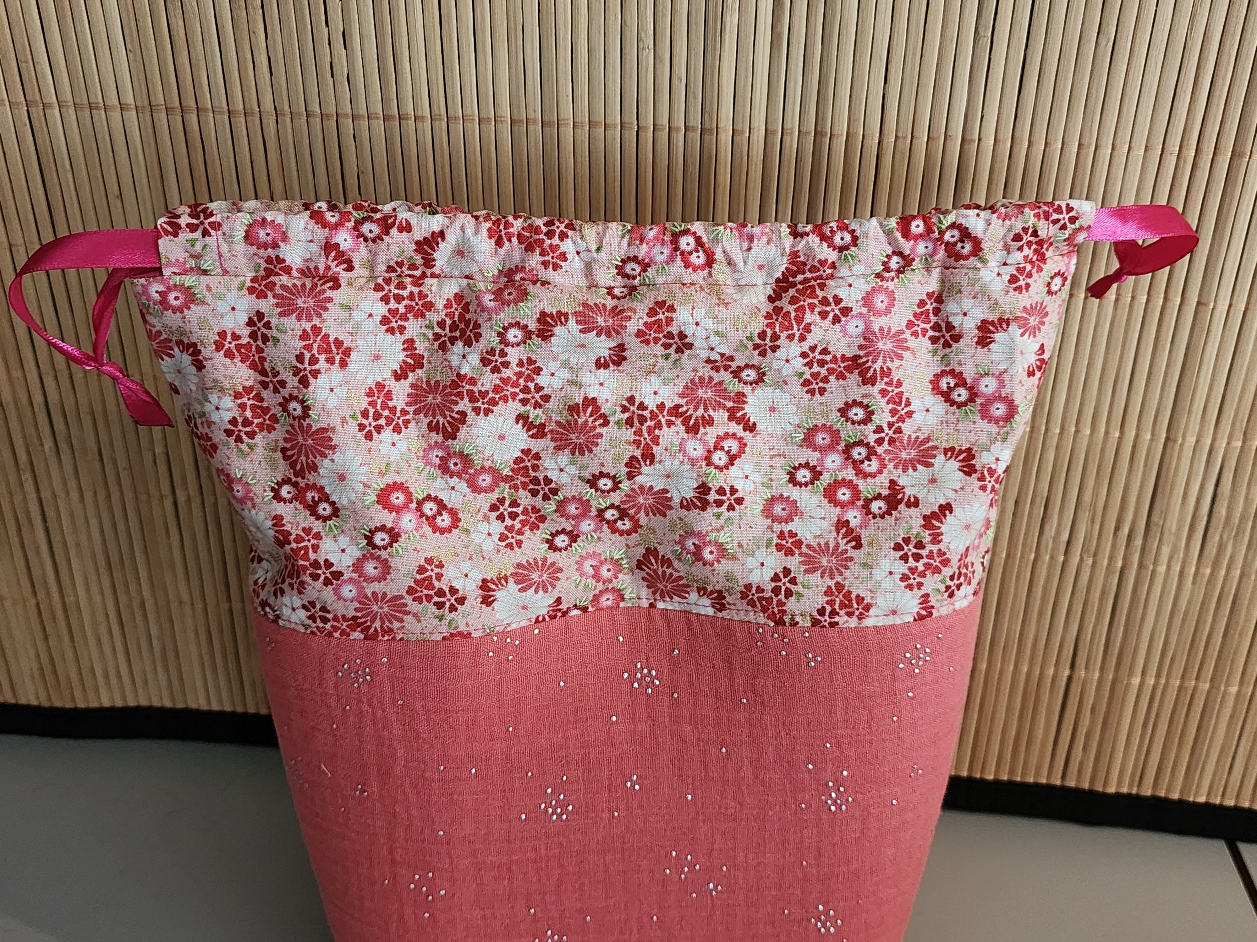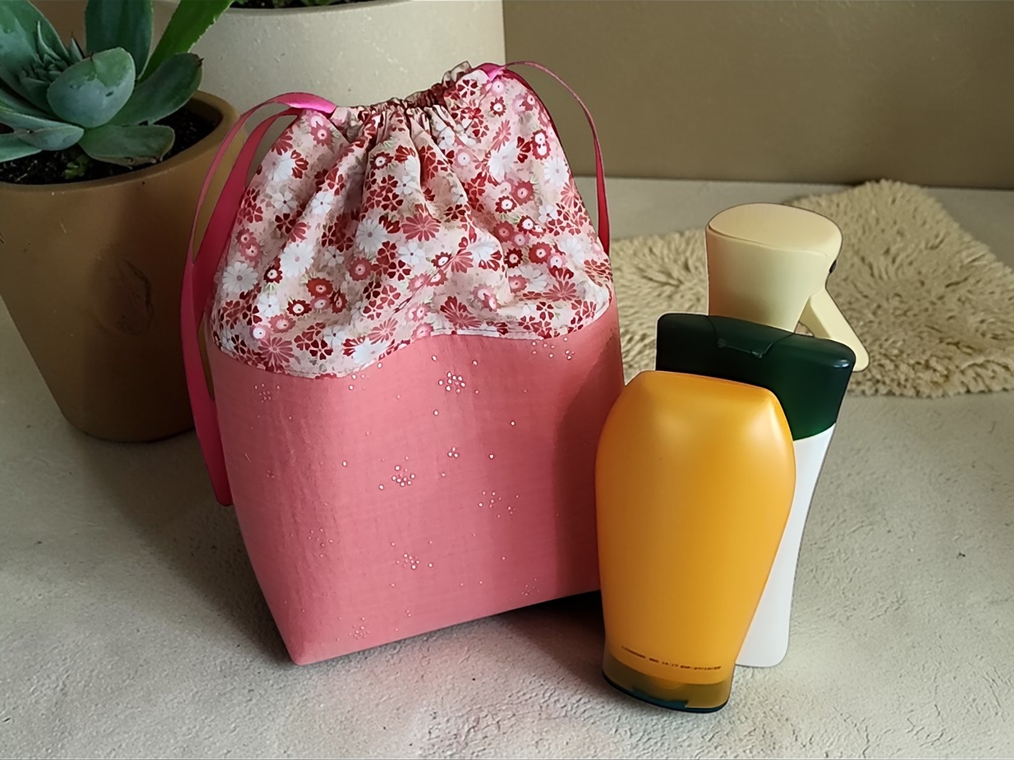 Trousse de toilette polochon petites fleurs rose et double gaz Pochette de voyage en tissu Rangement cosmétique Cadeau pratique et élégant