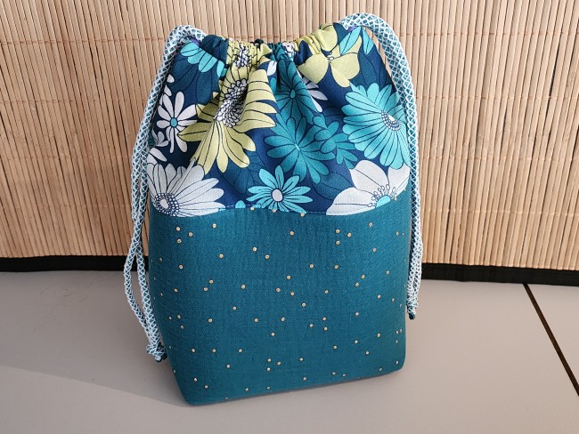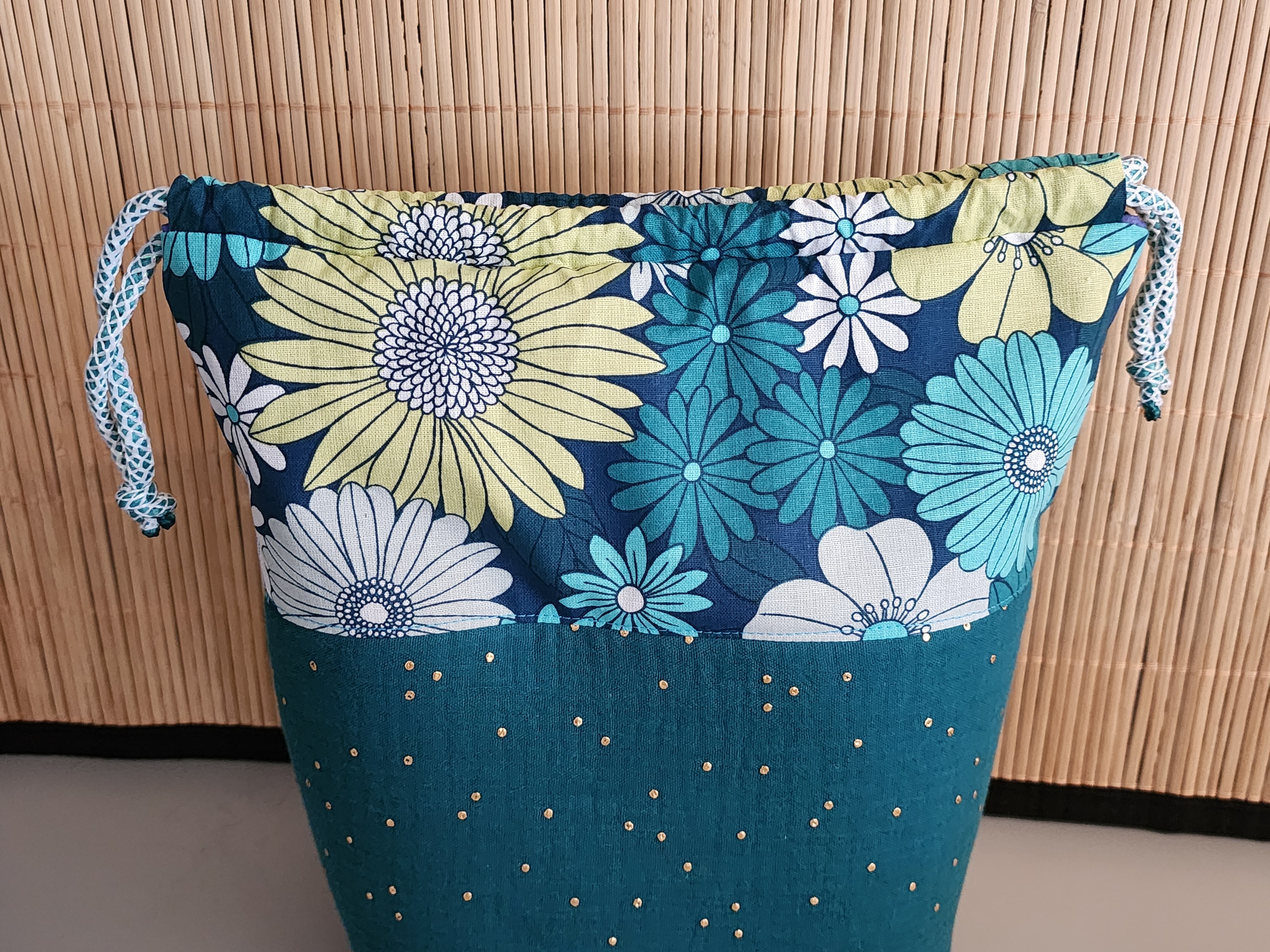Trousse de toilette polochon fleurs bleu et double gaz Pochette de voyage en tissu Rangement cosmétique Cadeau pratique et élégant