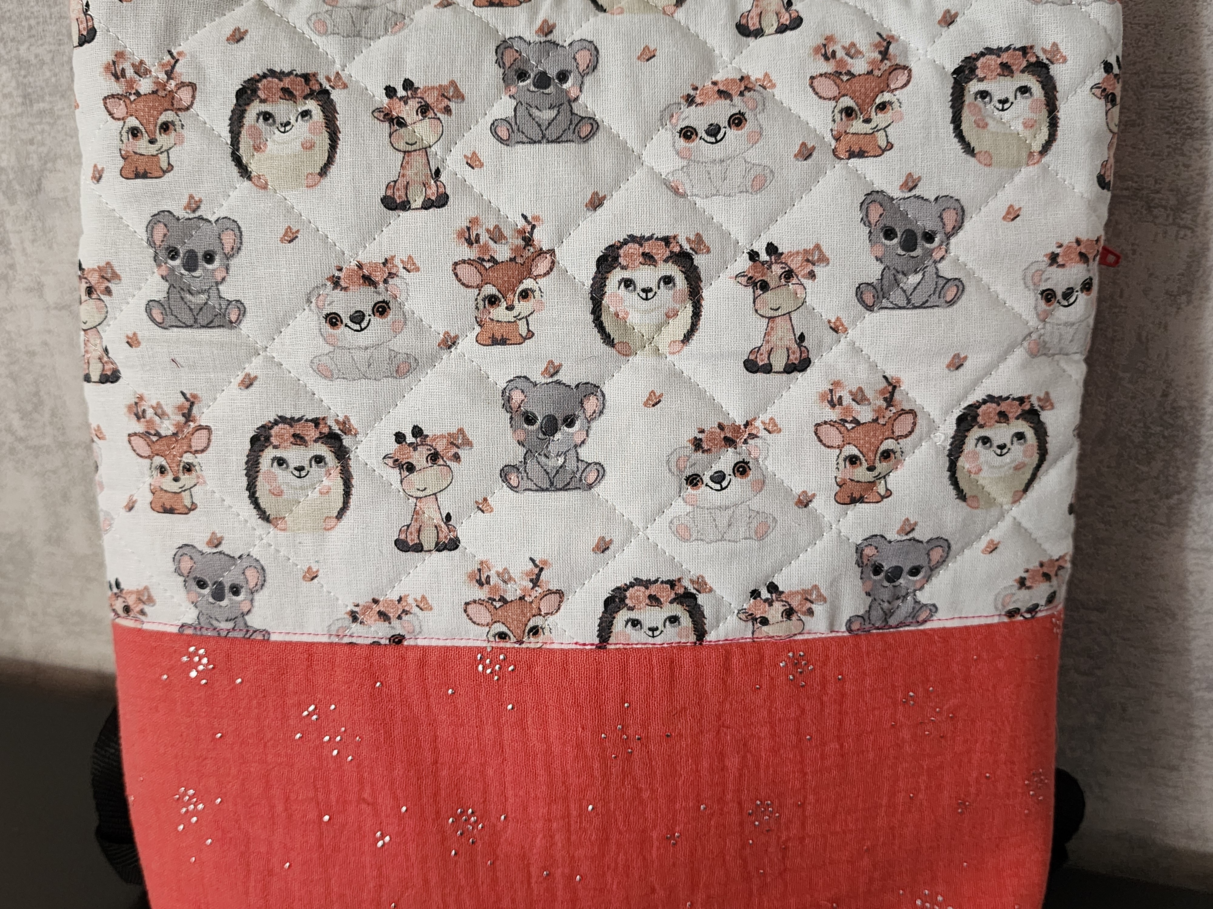 Sac à dos antivol matelassé corail et imprimé animaux – Sac à dos femme / enfant avec poche zippée dos