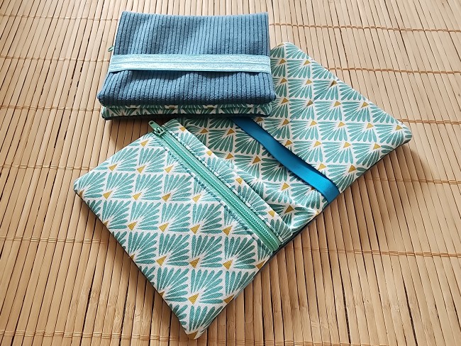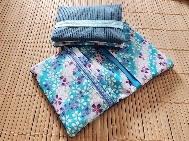 Trousse maquillage bleu trousse de toilette en coton double gaze molletonné trousse d'école Idée cadeau trousse de voyage