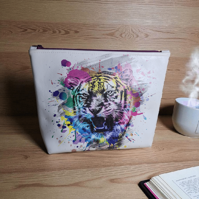 Trousse de toilette trousse maquillage tigre pop art blanc Pochette cosmétique originale Cadeau femme tendance – Accessoire beauté voyage
