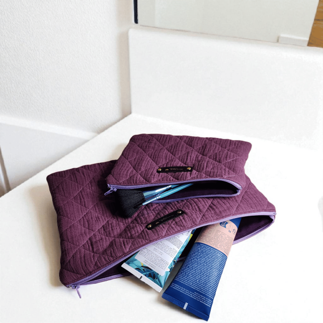 Trousse maquillage violet trousse de toilette en coton double gaze molletonné trousse d'école Idée cadeau trousse de voyage