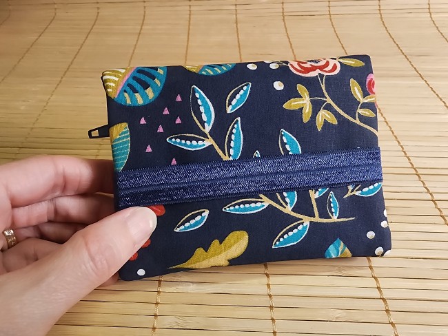 Portefeuille petites fleurs bleu et noir multipoches fermeture éclaire porte monnaie porte carte en tissus fermeture élastique portefeuille Diane
