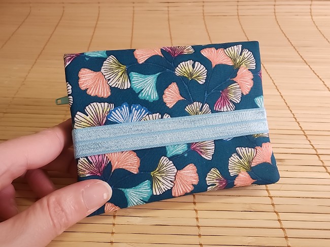 Portefeuille gingko bleu multipoches fermeture éclaire porte monnaie porte carte en tissus fermeture élastique portefeuille Diane