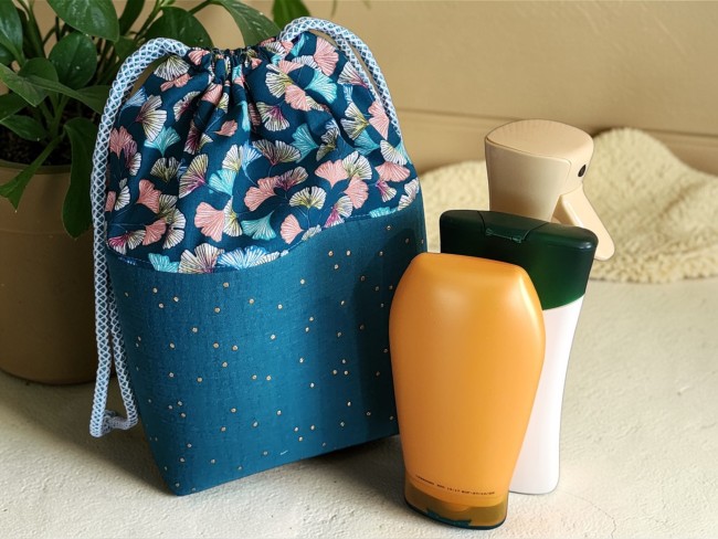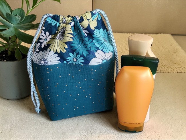 Trousse de toilette polochon fleurs bleu et double gaz Pochette de voyage en tissu Rangement cosmétique Cadeau pratique et élégant