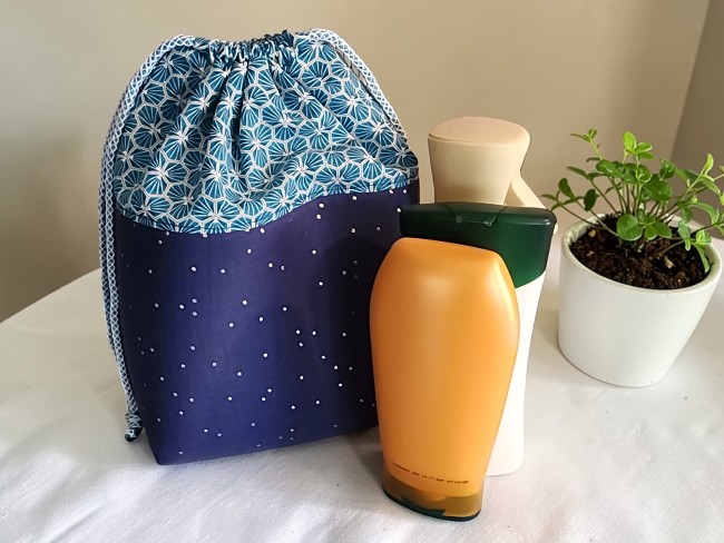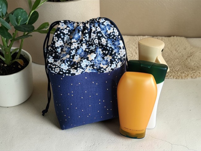 Trousse de toilette polochon sakura bleu et double gaz Pochette de voyage en tissu Rangement cosmétique Cadeau pratique et élégant