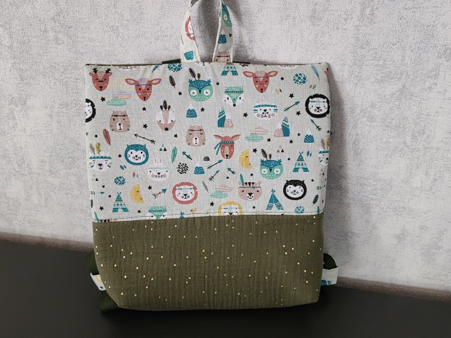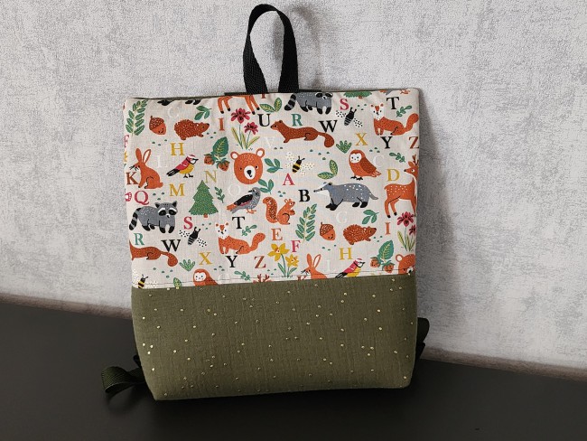 Sac à dos antivol animaux de la forêt et double gaze vert – Sac à dos femme / enfant avec poche zippée dos