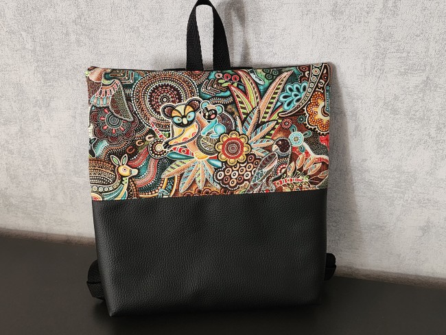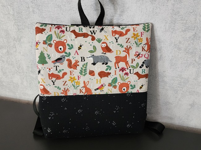 Sac à dos antivol animaux de la forêt et double gaze noir – Sac à dos femme / enfant avec poche zippée dos
