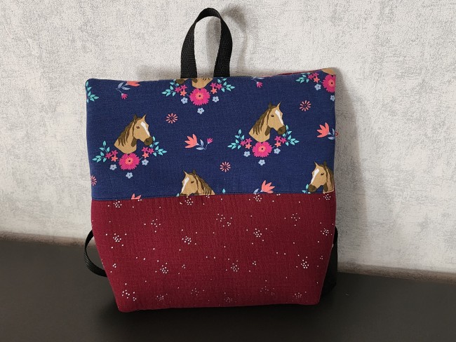Sac à dos antivol doubles gaze et tissus chevaux – Sac à dos femme / enfant avec poche zippée dos