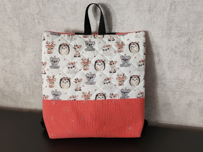 Sac à dos antivol matelassé corail et imprimé animaux – Sac à dos femme / enfant avec poche zippée dos